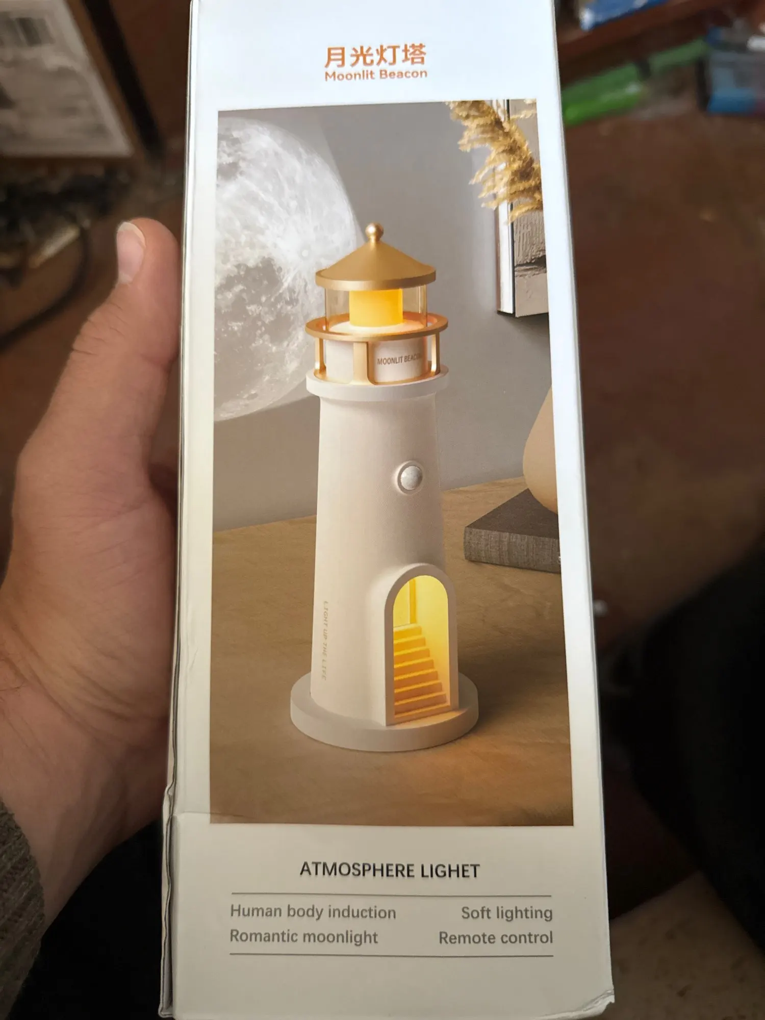 Un faro muy bonito, con sonido de olas del océano, diferentes músicas, sonidos de ruido silenciosos, la luz del control remoto no daña los ojos y el reflejo de la luna es claro. Lo compré por este precio y estoy muy satisfecho.